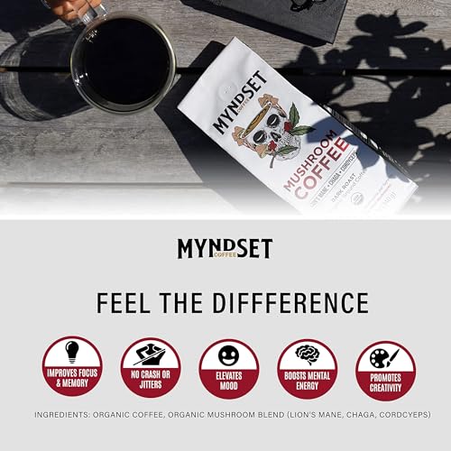 Experience the harmonious blend of rich coffee and adaptogen mushrooms. Purchase now for a transformative coffee break. More details available on Amazon.